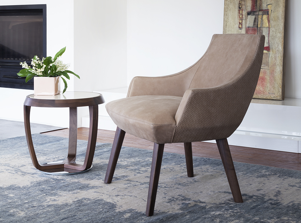 Beret Collection Home / Beret L’eleganza al primo posto. L’eleganza formale della collezione Beret è ispirata alle cuciture tipiche del berretto francese “beret”. Gabriela Raible l’ha disegnata, giocando con le similitudini delle linee senza tempo e particolari essenziali ed incisivi. Anche in questo caso il progamma comprende quattro prodotti: sedia, poltroncina da pranzo, lounge e sgabello. Per raggiungere l’obiettivo di avere delle dimensioni sottili in certe parti del prodotto e poter comunque ottenere il massimo comfort, le strutture interne della sedia e della poltroncina sono realizzate con stampi nei quali viene iniettato il poliuretano schiumato. I rivestimenti. Le sedute, con le loro linee curve e pulite, vengono rivestite in tessuto o pelle e il confezionamento talvolta si arricchisce di cuciture sulla seduta, con un tratto grafico marcato e pulito per esaltare le forme. Questo può anche essere realizzato senza la trapuntatura nello schienale, ampliando così la possibilità di personalizzare la gamma. Questi dettagli raccontano l’esperienza della tappezzeria, il “fatto a mano” che crea una storia unica per ogni composizione. Le sedute della collezione Beret, come del resto tutte le altre collezioni, possono venire rivestite con materiali inviati dai clienti. Le particolari sezioni delle gambe in legno massello, infine, si integrano perfettamente in un equilibrio tra forma e dimensione. Products Scopri tutti i prodotti della collezione Beret. Ti aspetta una pluralità di prodotti, dalle più disparate forme: ce n’è per tutti i gusti. Esplora tutti i prodotti Beret Chair Beret Lounge Beret Stool