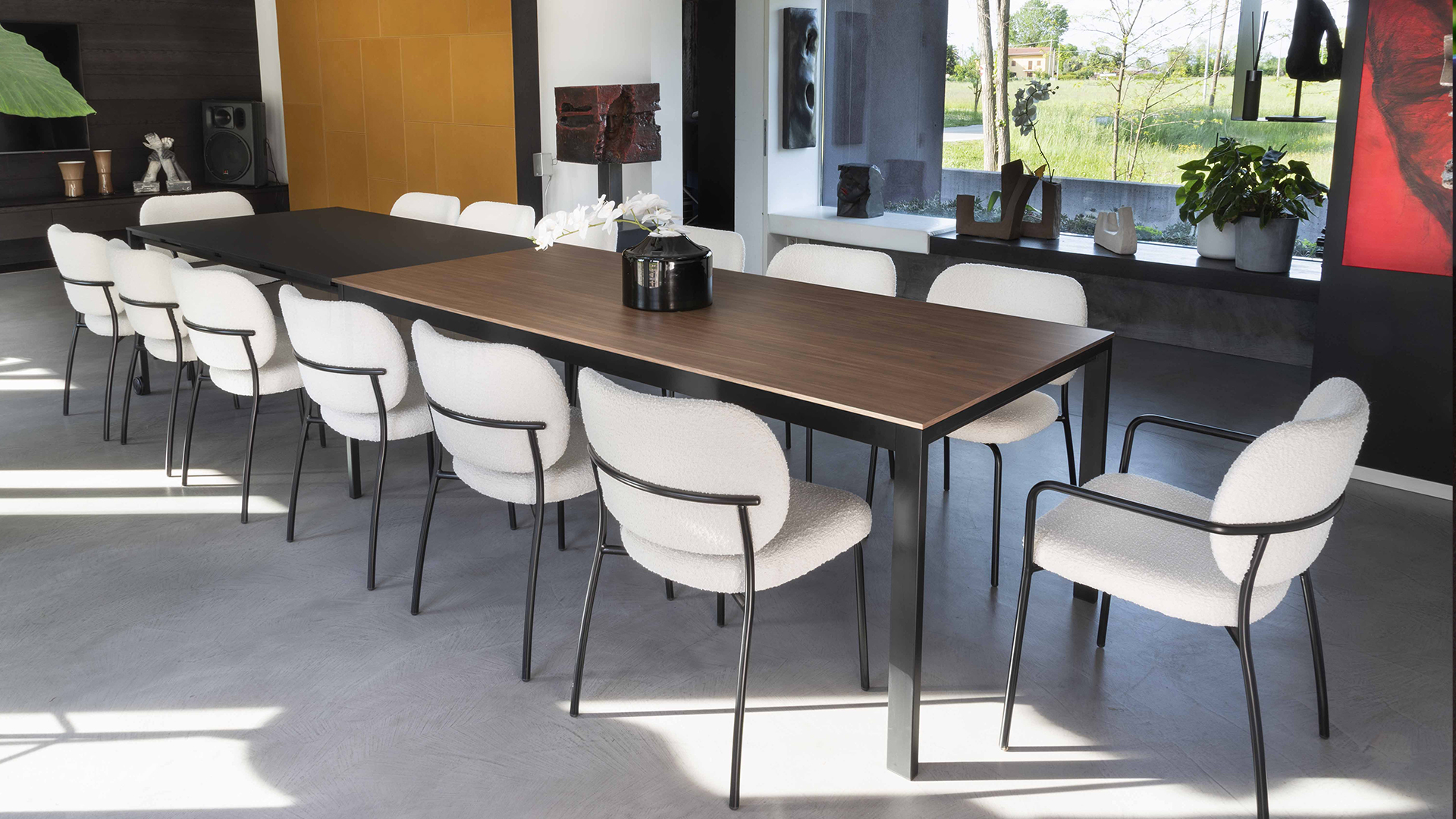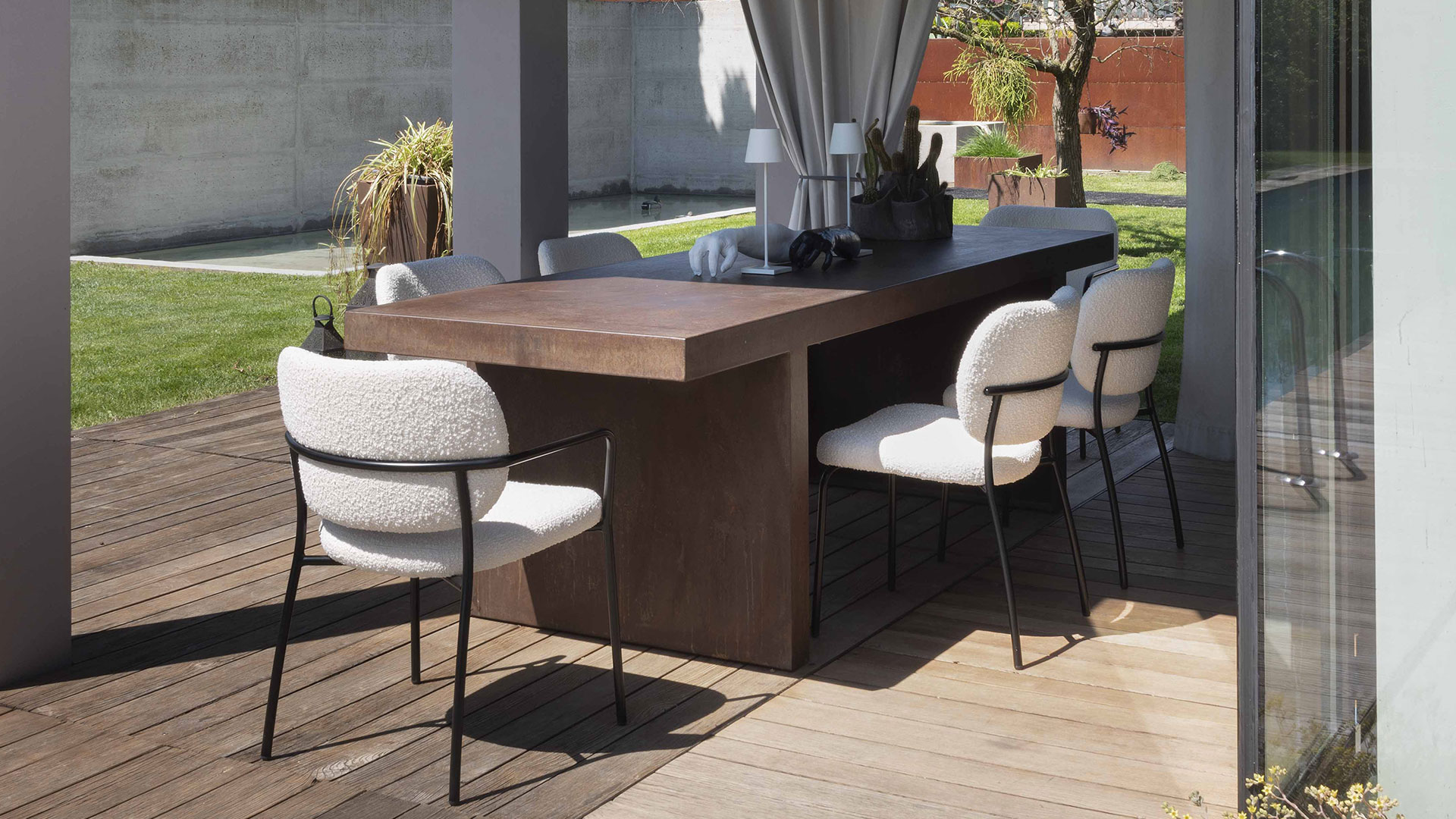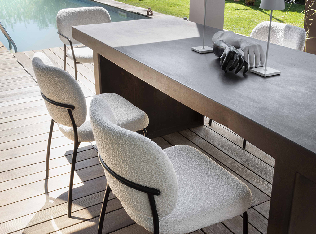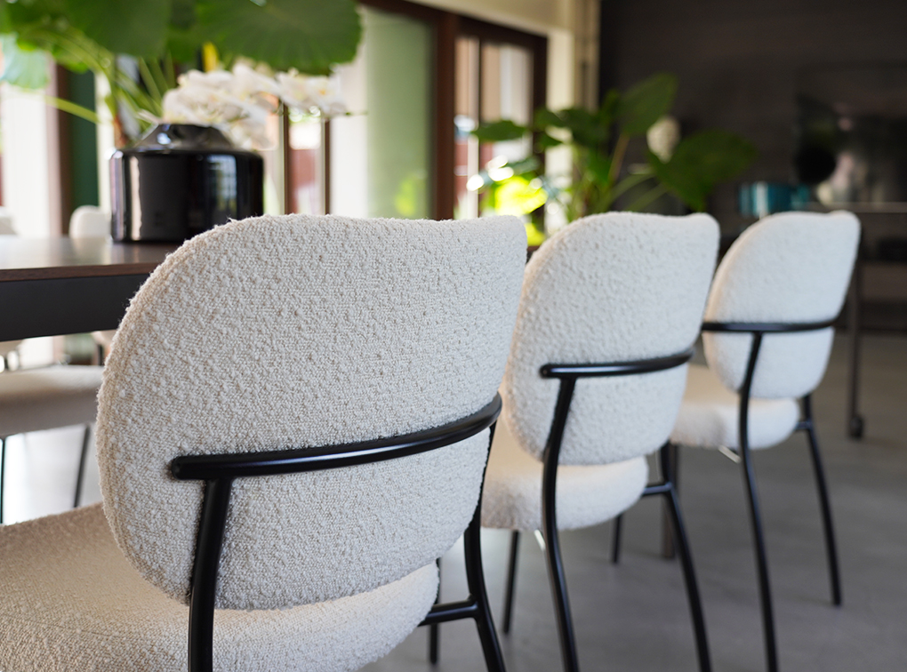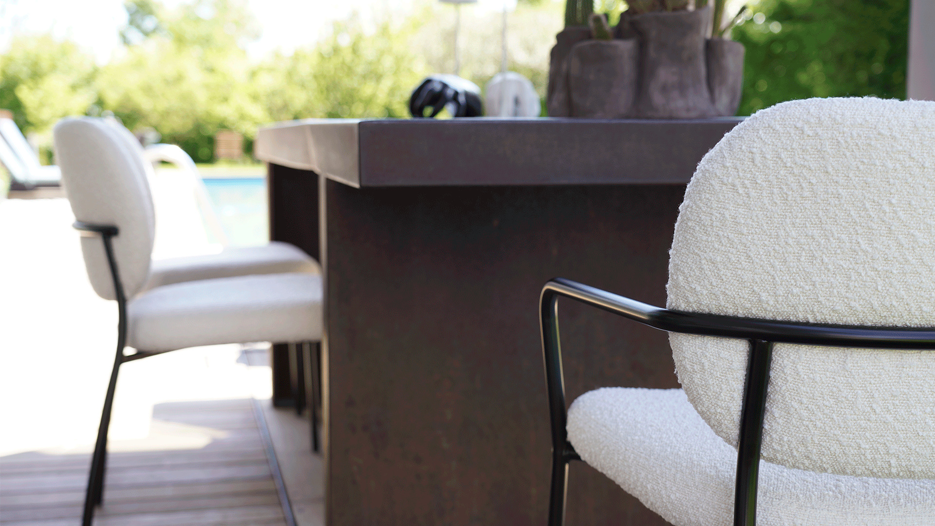 Eli Collection Home / Eli Morbida e accogliente La collezione Eli, composta da una sedia, una poltroncina e uno sgabello, offre una versatilità completa. La collezione presenta un design elegante e semplice con linee pulite e una comoda seduta imbottita. Lo schienale leggermente curvo fornisce supporto e comfort extra. Il massimo del comfort e dello stile Il tubolare di metallo che forma la struttura della sedia le dona un tocco elegante e ricercato che sottolinea il suo design moderno e aggraziato. La delicata curva del tubolare metallico conferisce alla sedia un aspetto accattivante e raffinato. Per diversi ambienti Una delle caratteristiche principali della collezione Eli è la sua adattabilità. Sebbene la collezione abbia un design contemporaneo che sta benissimo all’interno, è perfetta anche per essere utilizzata all’aperto. In & Out La struttura della collezione Eli outdoor viene prodotta con un trattamento specifico per gli spazi esterni, e anche lo schienale e la seduta sono dotati di un rivestimento interno idrorepellente progettato per un uso all’esterno. Per il rivestimento è possibile utilizzare il nostro tessuto della serie In & Out, oppure altri rivestimenti specifici per outdoor. Il tessuto In & out è concepito per l’uso esterno, grazie alla sua durata e resistenza ai raggi UV, all’umidità e alla muffa. Prodotti Scopri tutti i prodotti della collezione Eli Ti aspetta una pluralità di prodotti, dalle più disparate forme: ce n’è per tutti i gusti. Esplora tutti i prodotti Eli Chair Eli Armchair Eli Stool