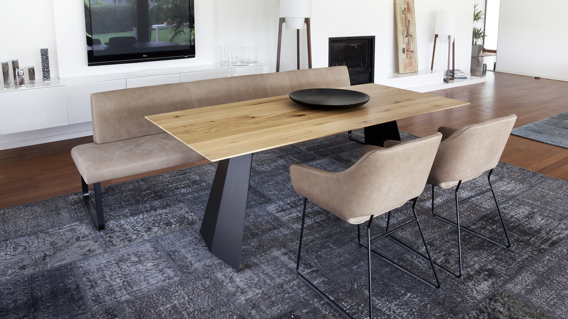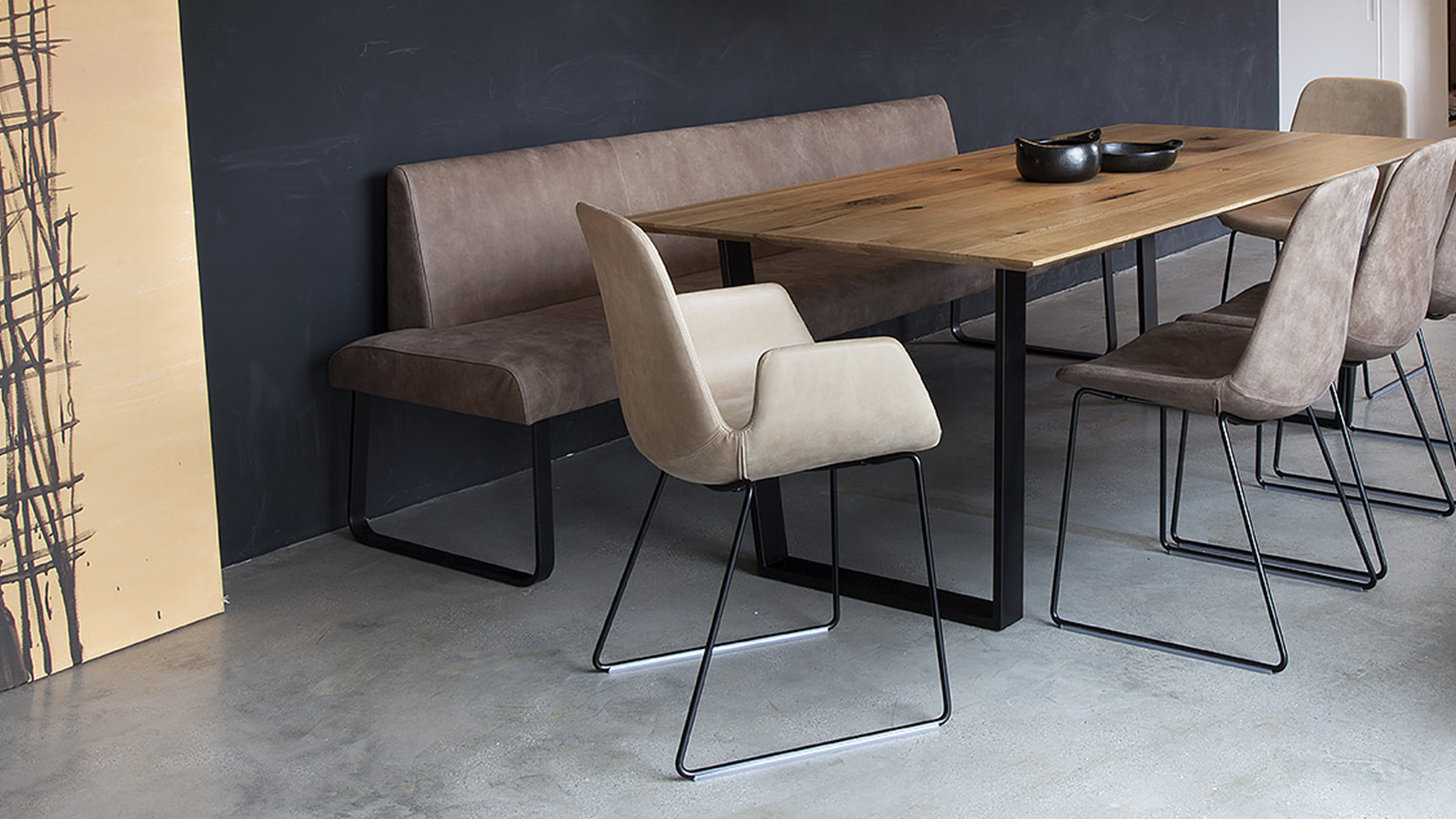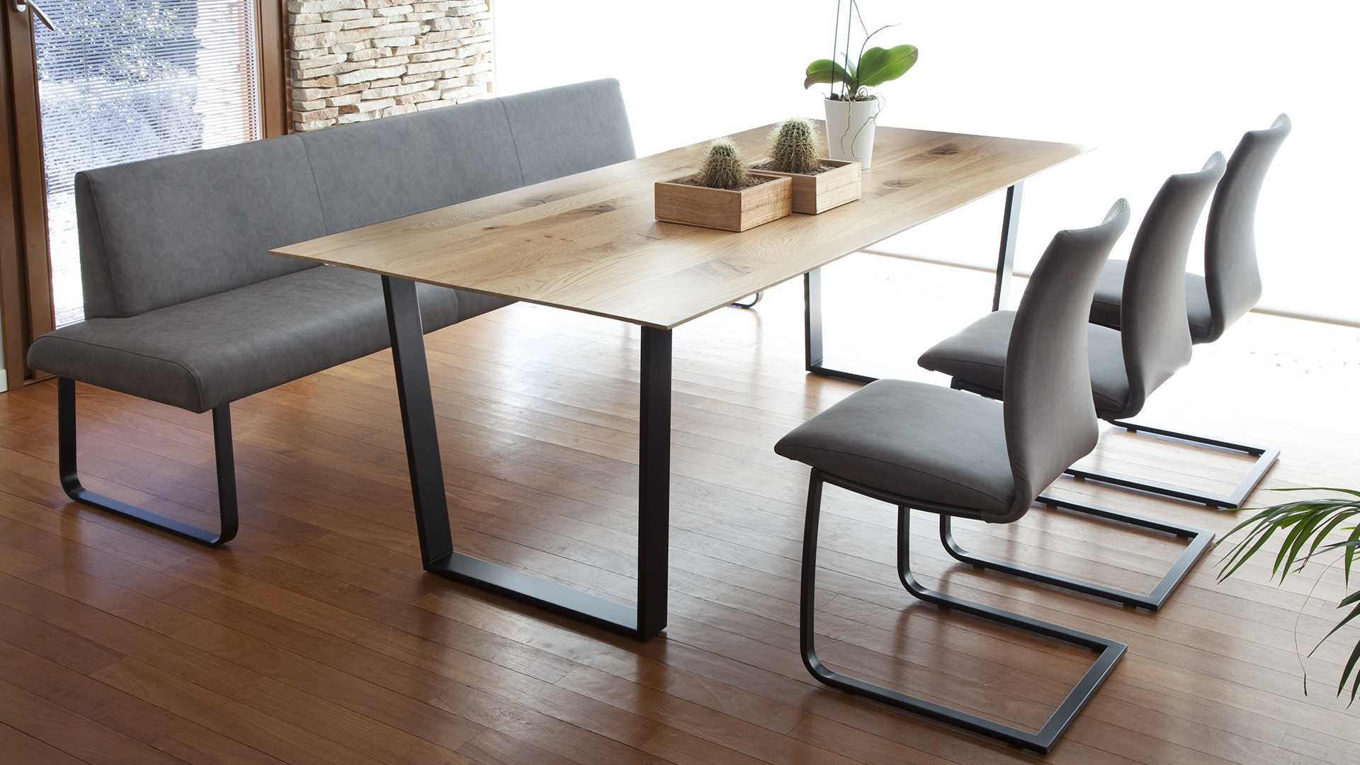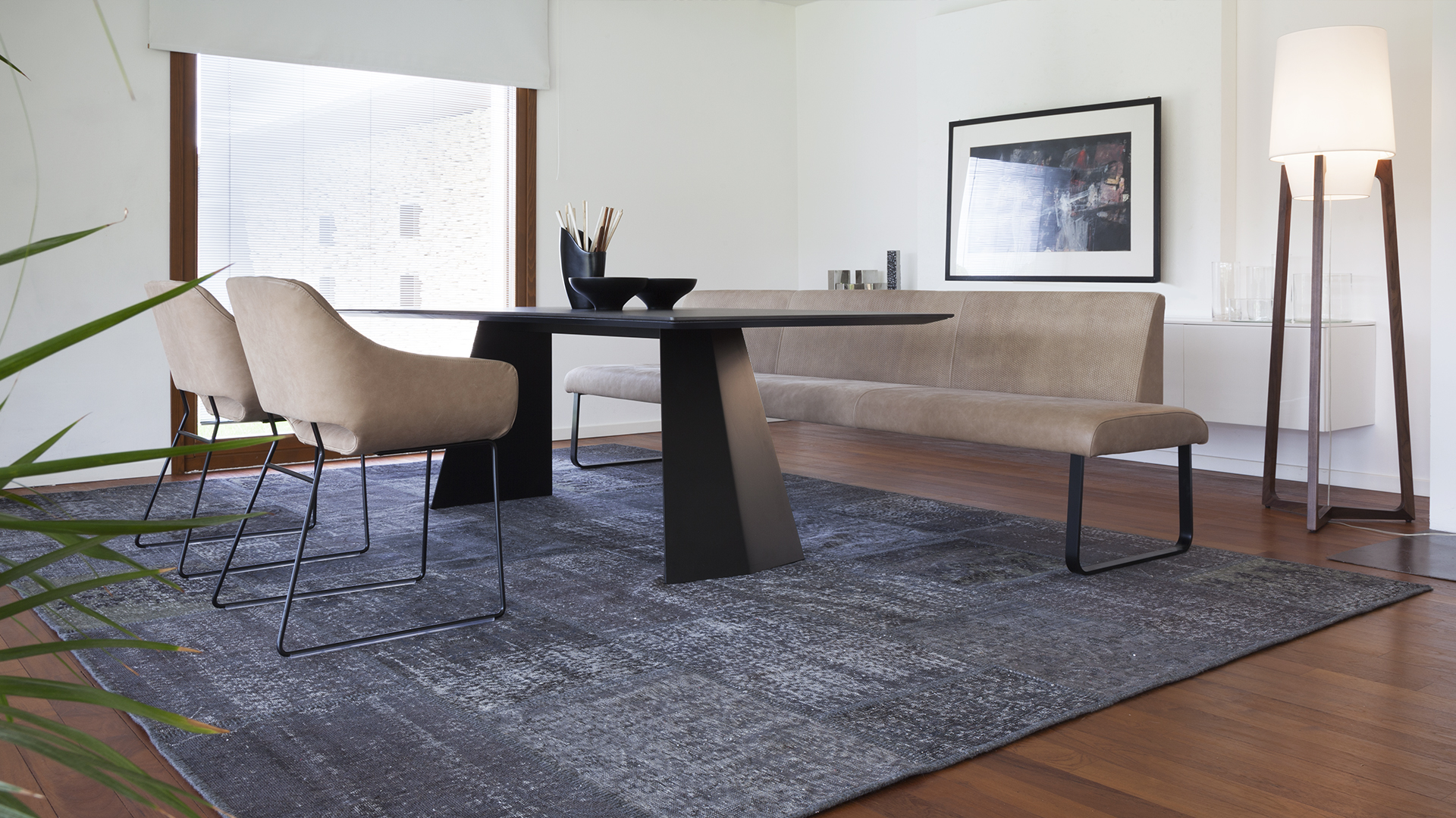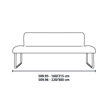 Quando realizzata nelle dimensioni tra 1 metro e 3 metri questa panca non necessita di ulteriori basi di appoggio. Il basamento è fornibile laccato nero opaco; Il rivestimento di questa seduta prodotta in poliuretano schiumato è realizzabile con un’ampia gamma di tessuti e di pelli.