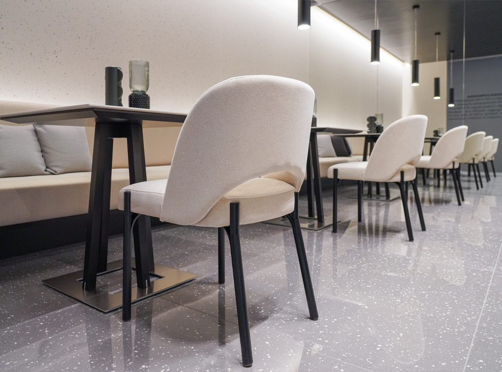 Libra incarna eleganza formale e comfort elevato. Le forme equilibrate e pulite si uniscono alle generose imbottiture che offrono il massimo del comfort; ora vengono proposte anche con un interessante telaio in acciaio.