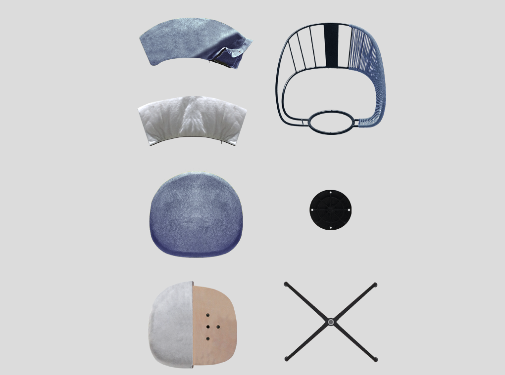 Strip”,  una collezione di sedute sviluppata considerando il principio della completa separabilità dei materiali a fine vita del prodotto secondo i criteri di economia circolare.